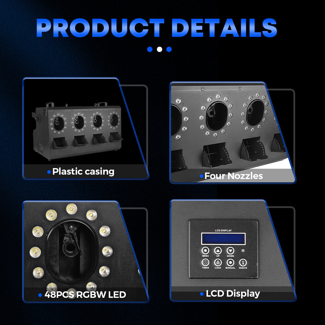 Multi-Color LED Lighting: It features 48 high-powered 3-in-1 LEDs with four color options (Red, Green, Blue, and White), allowing for versatile lighting effects.