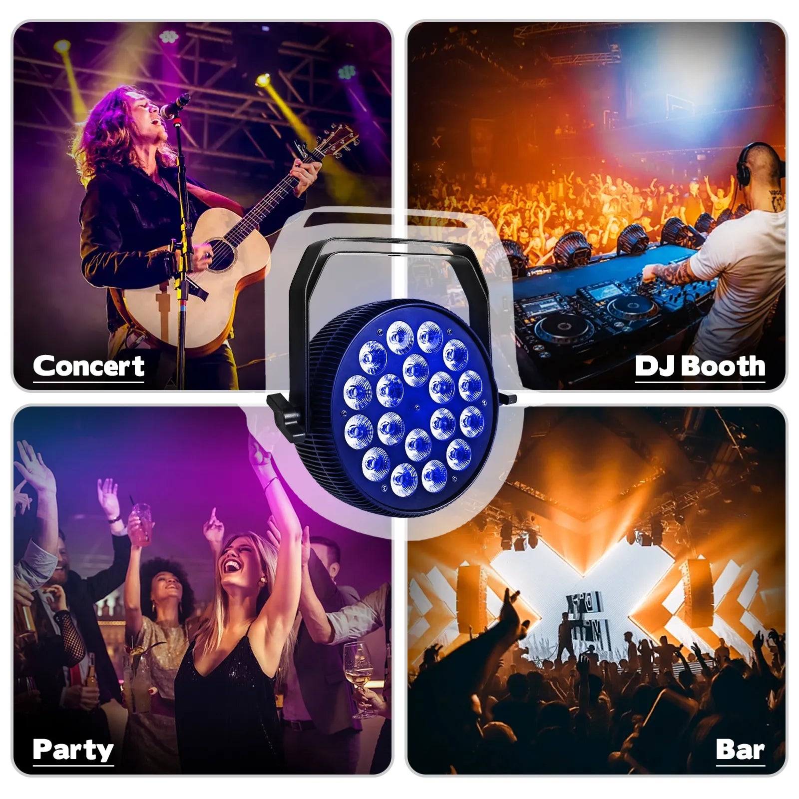 2. Function: Ideal for various applications including stage performances, weddings, club bars, festival celebrations, and more. The versatile LED par light is designed for both professional and casual use.