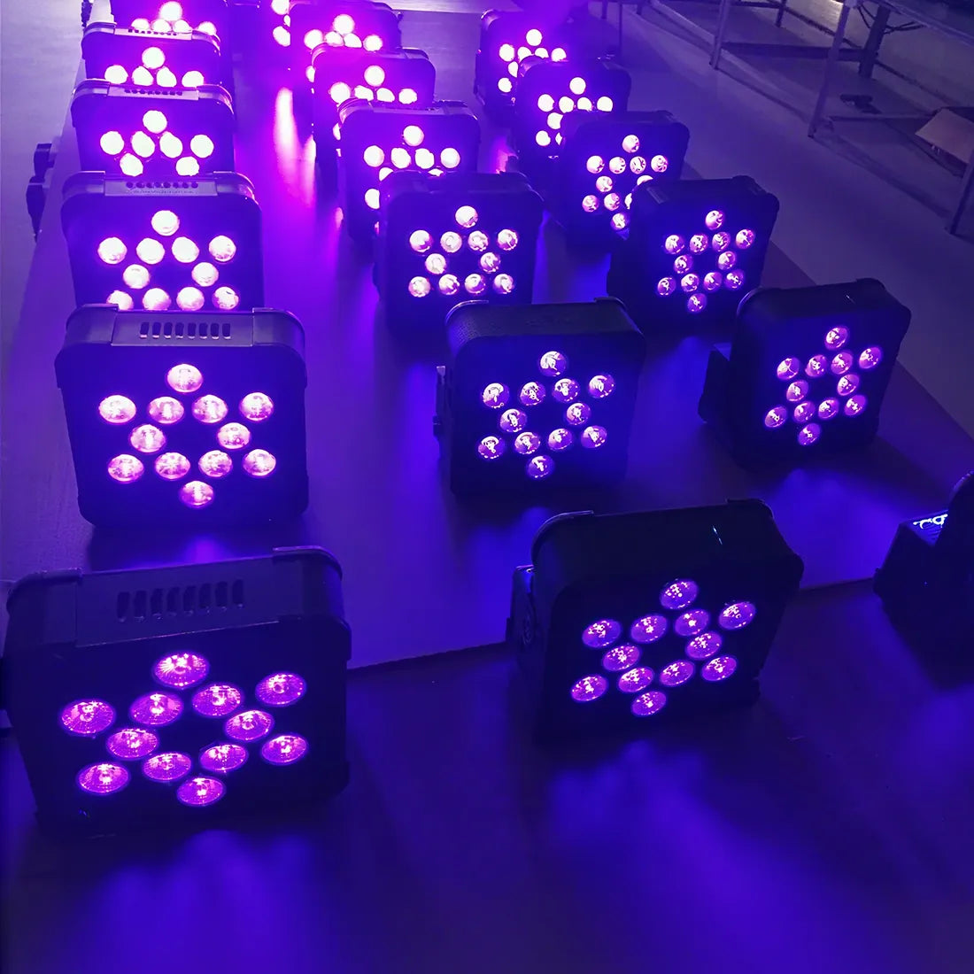 - 12*18W rgbwa+uv 6 en 1 led, la luz par de la batería puede mostrar 6 colores diferentes.