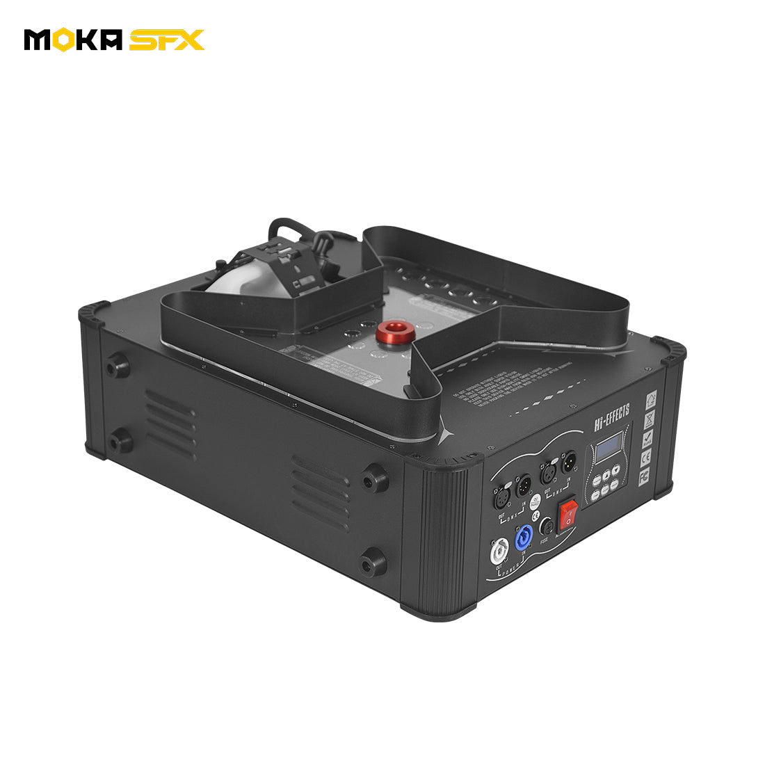 A: The H-F01 machine can start and stop immediately upon command. The fogging effect halts instantly upon activation, taking only 1 second. It features 27 LEDs, indicating more powerful and intense lighting effects. It uses professional-grade fast-dissipating vertical fog fluid, which boasts better light transmission characteristics, producing brighter fog that dissipates within seconds, making it ideal for creating instantaneous atmospheric columns. The heating time is only 4 minutes, with a spraying time of 8-10 seconds and a heating interval of just 20 seconds.