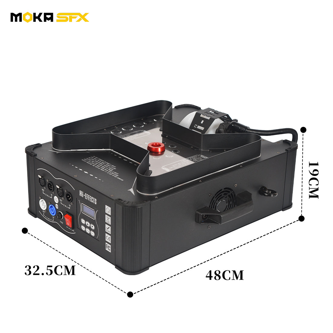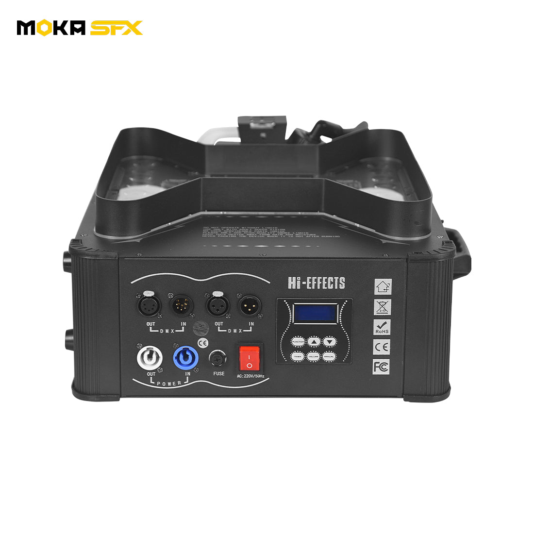 - 27 high-brightness 3W LEDs, remote-controlled to set the color of the smoke spray, creating a dazzling and colorful effect.