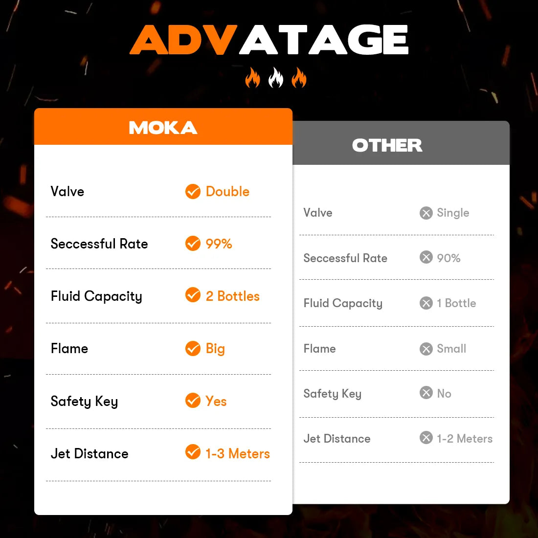 Embrace the future of flamethrower technology with the MOKA SFX Fire Gun. Whether for professional applications or recreational use, its unmatched safety features and high ignition success rate make it an indispensable tool for those seeking a reliable and exhilarating experience.