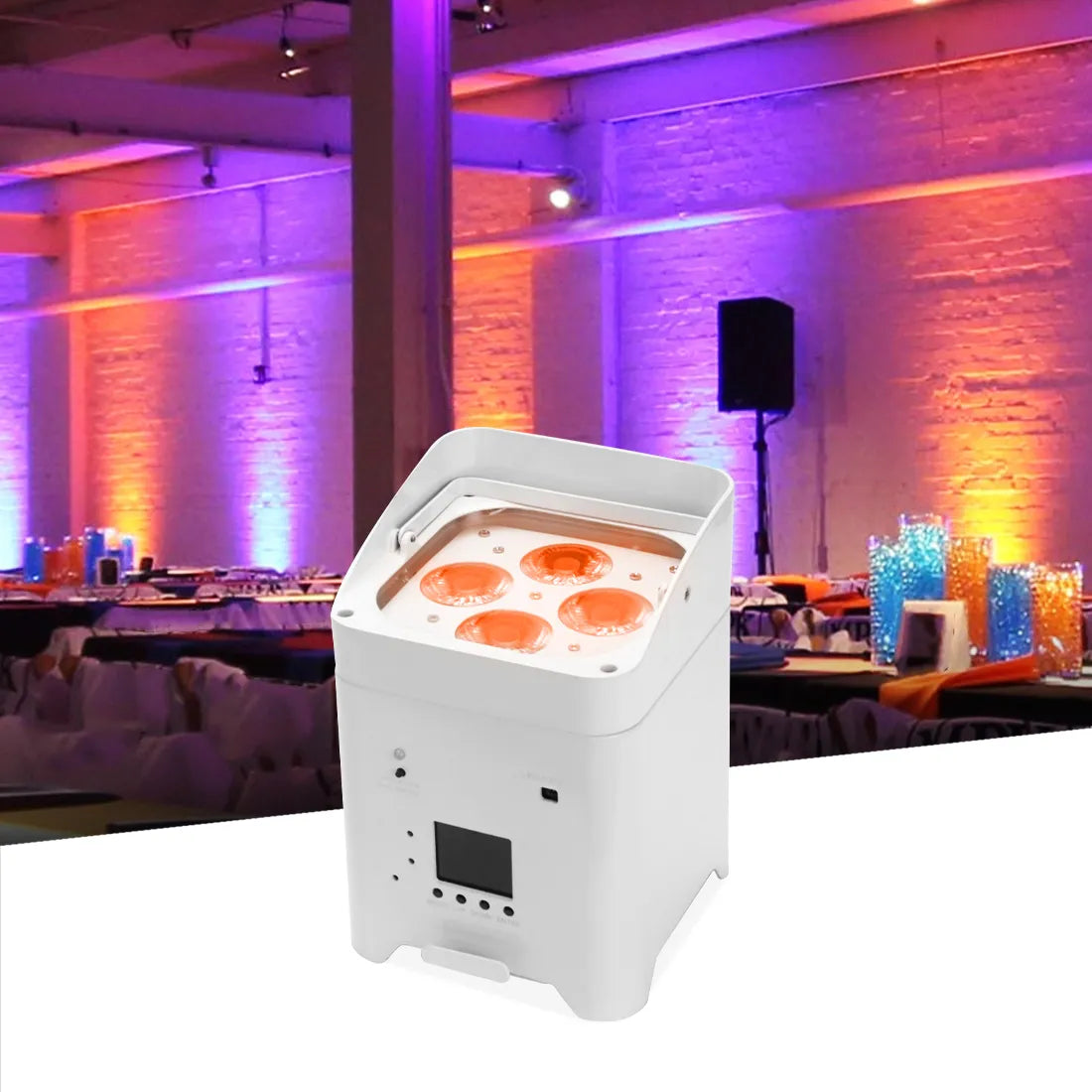 • 4*18W RGBWA+UV 6 in 1 LED, high brightness, and good lighting effect.