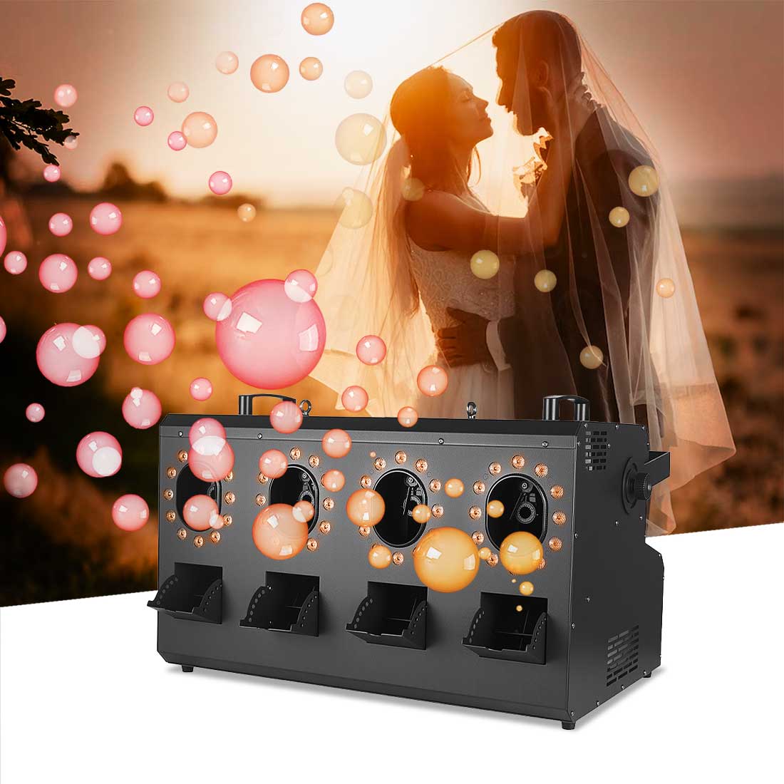 1. The latest LED 4-wheel bubble machine from MOKA SFX has multiple control modes: manual LCD panel control, DMX control, and remote control mode.