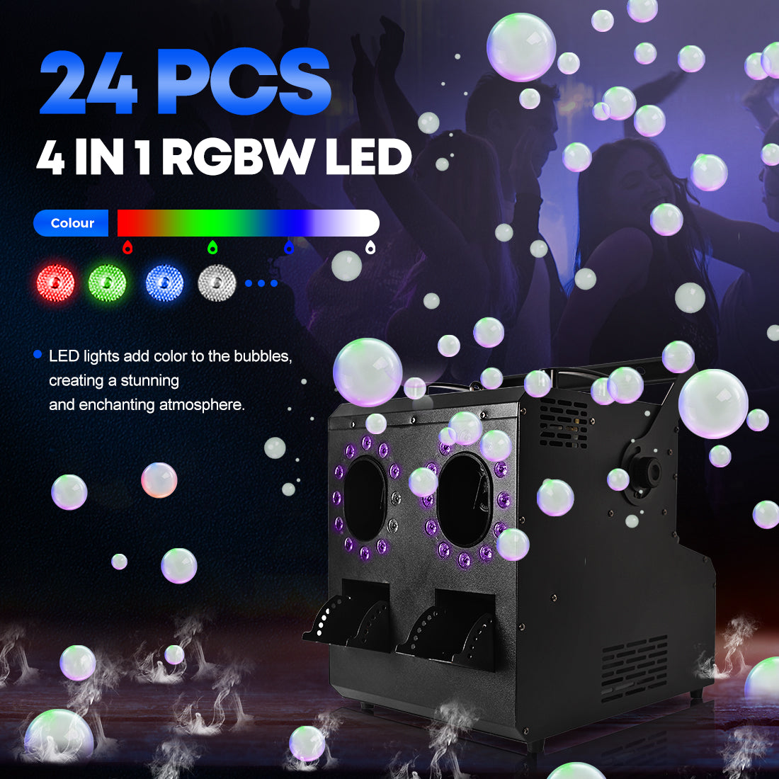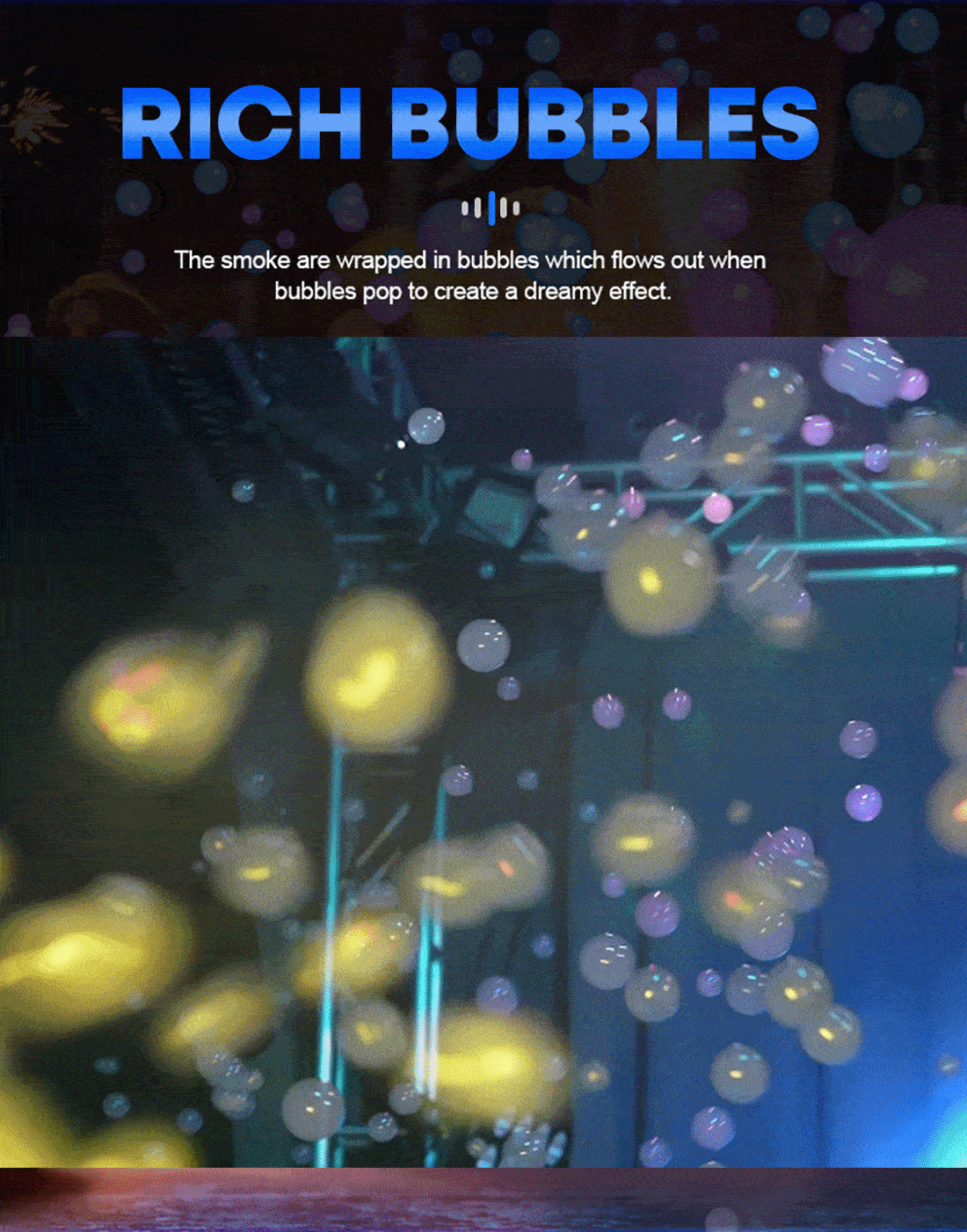 - With RGBW four-color LED lamp beads, DMX512 can adjust the light color, emitting colorful bubbles.