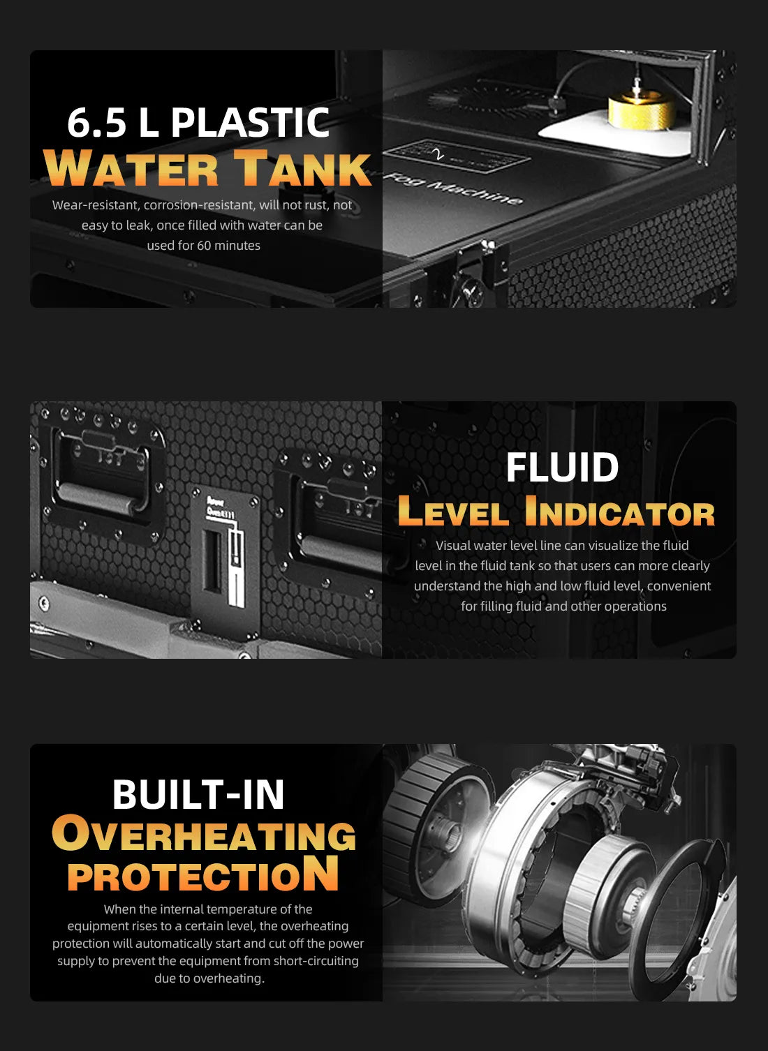- The low fog machine has overheating protection to increase the service life of the machine.
