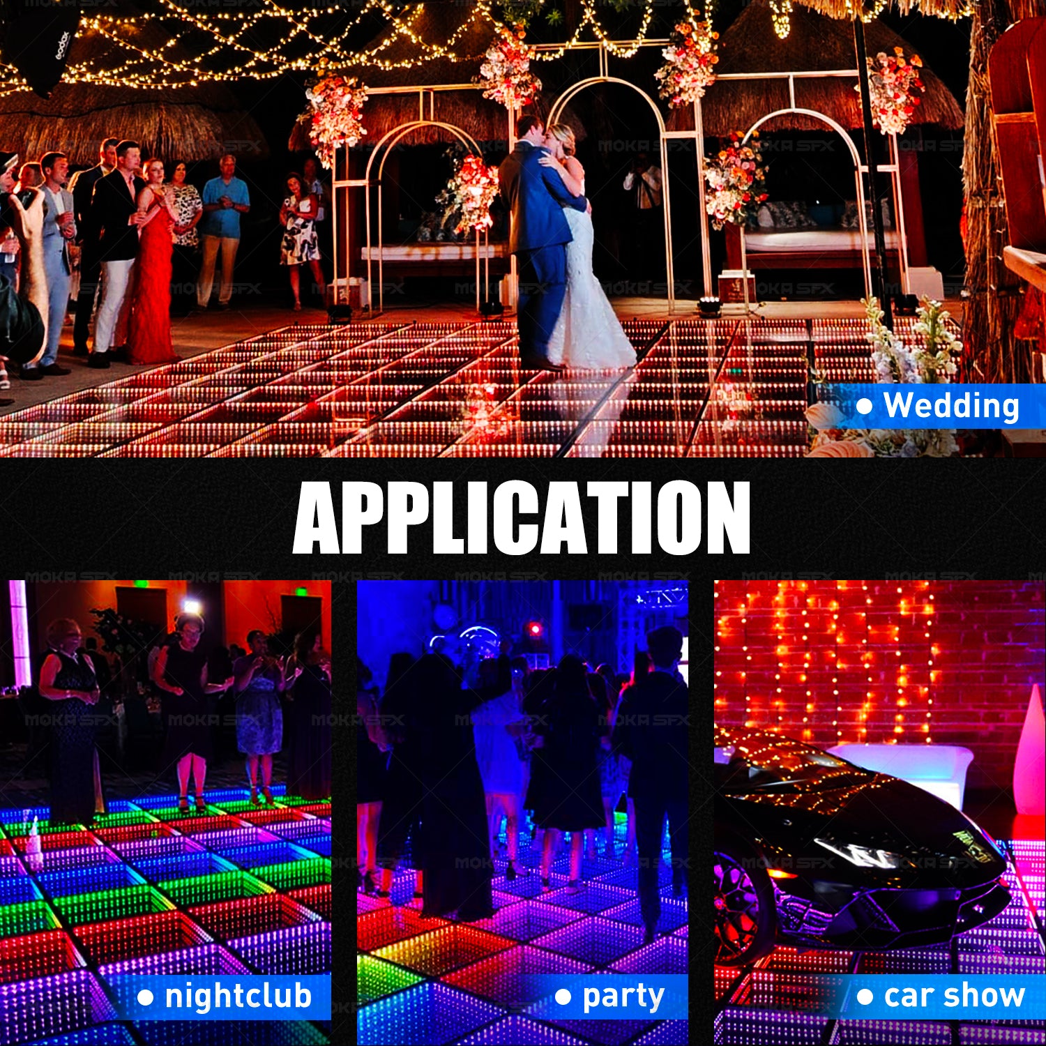 - According to the linking method, there are magnetic, wiring, and built-in power supply models of LED dance floors, regardless of the lighting effect, the same type of connection, the same way.